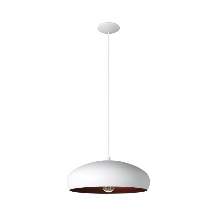 Μονόφωτο κρεμαστό φωτιστικό καμπάνα από την εταιρεία Eglo σε λευκό χρώμα, με υποδοχή για έναν λαμπτήρα και ντουί E27.