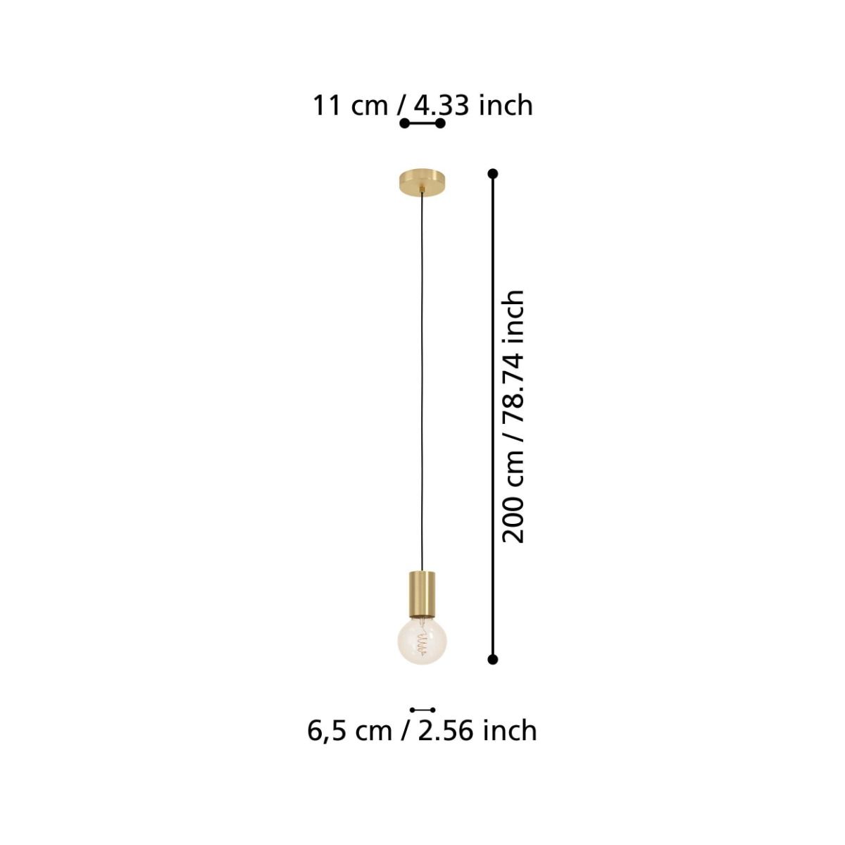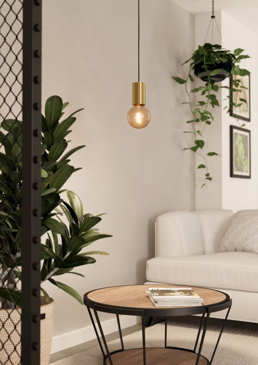 Μονόφωτο κρεμαστό φωτιστικό από την εταιρεία Eglo σε χρυσό χρώμα, με υποδοχή για έναν λαμπτήρα και ντουί E27.
