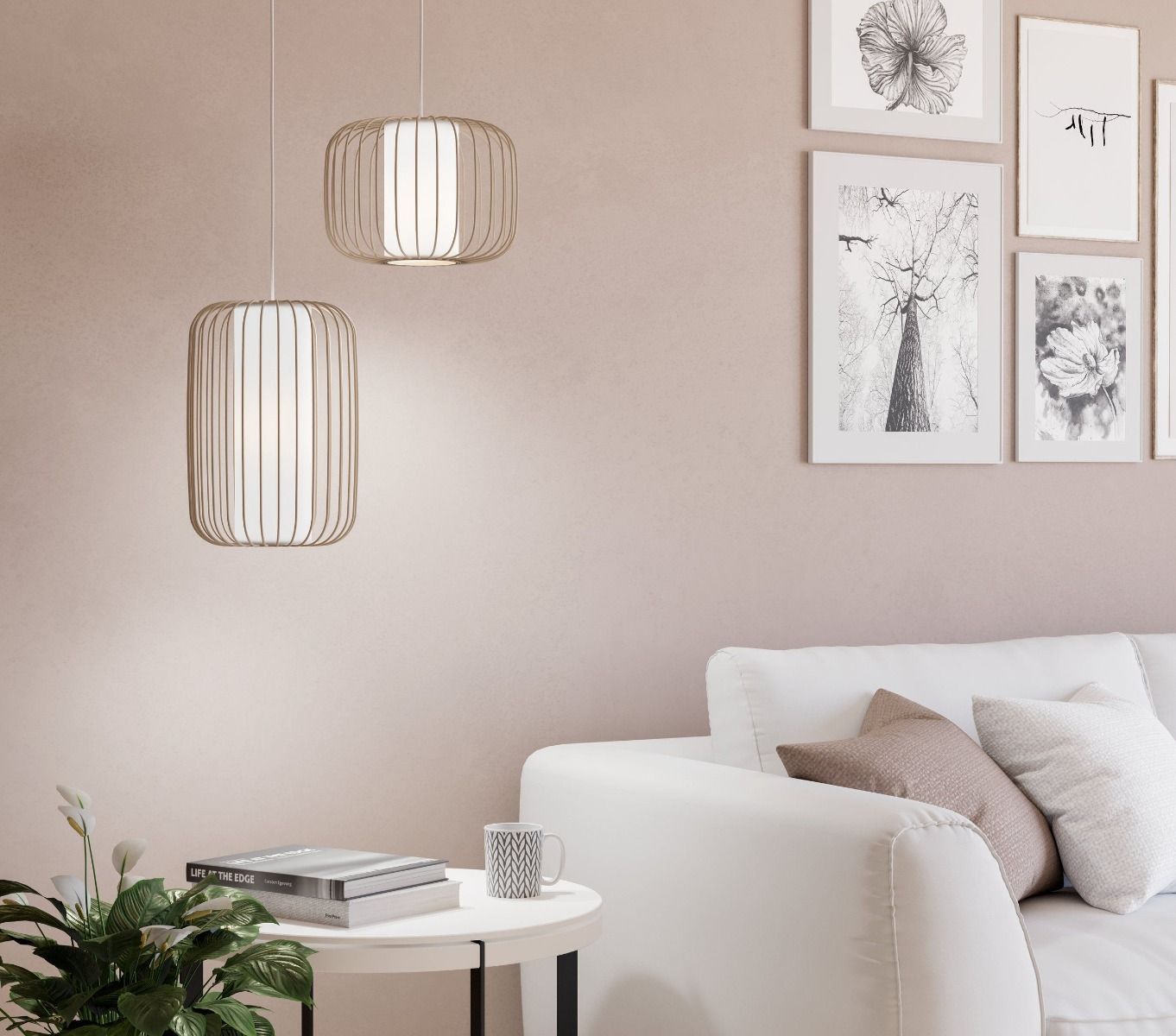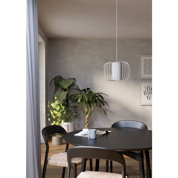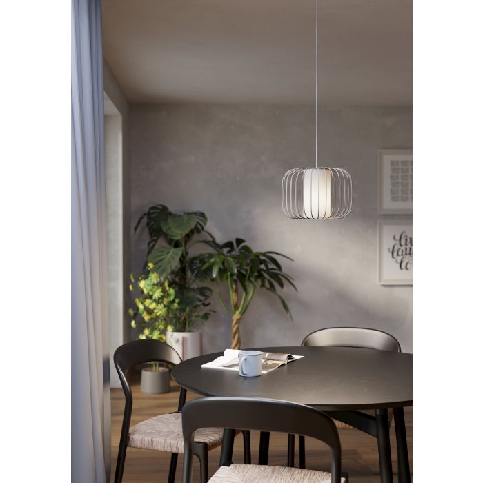 Μονόφωτο κρεμαστό φωτιστικό από την εταιρεία Eglo σε μπεζ χρώμα, με υποδοχή για έναν λαμπτήρα και ντουί E27.
