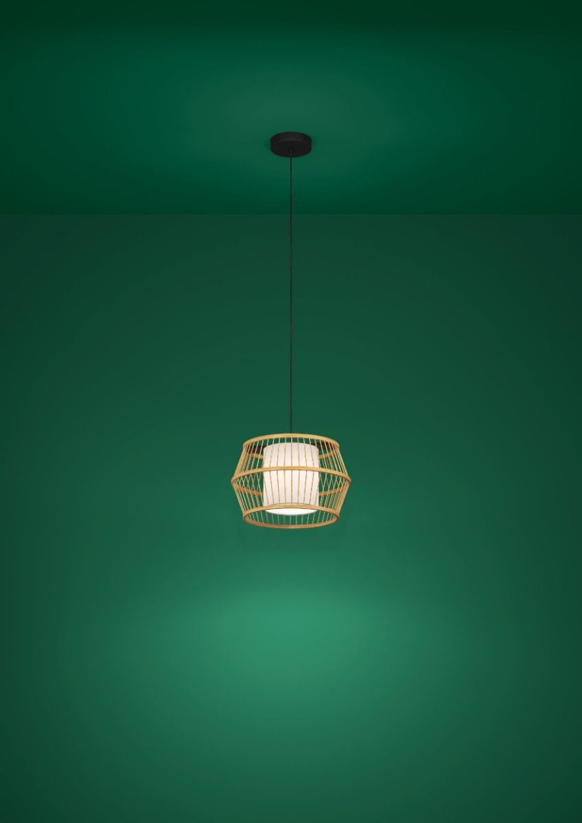 Κρεμαστό Φωτιστικό Μονόφωτο 34,5xH150cm 1xE27 Μαύρο Μέταλλο-Ξύλο Φυσικό Eglo Monterroso 390233