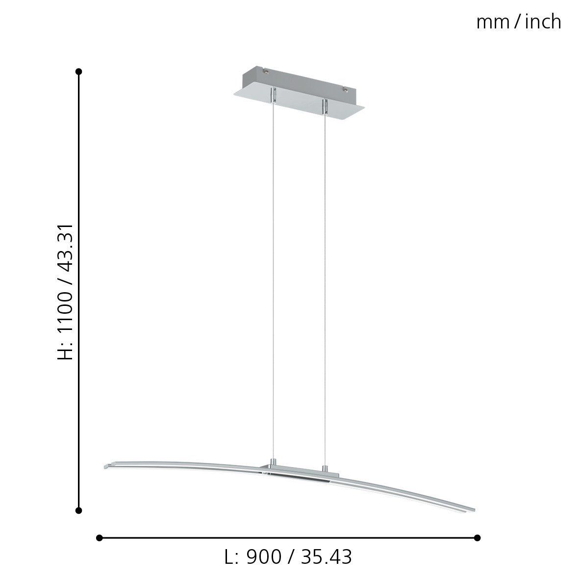 Κρεμαστό Φωτιστικό Ράγα Χρωμέ L900xH1100mm LED 30w 3000Κ 3500lm Eglo Lasana 95147