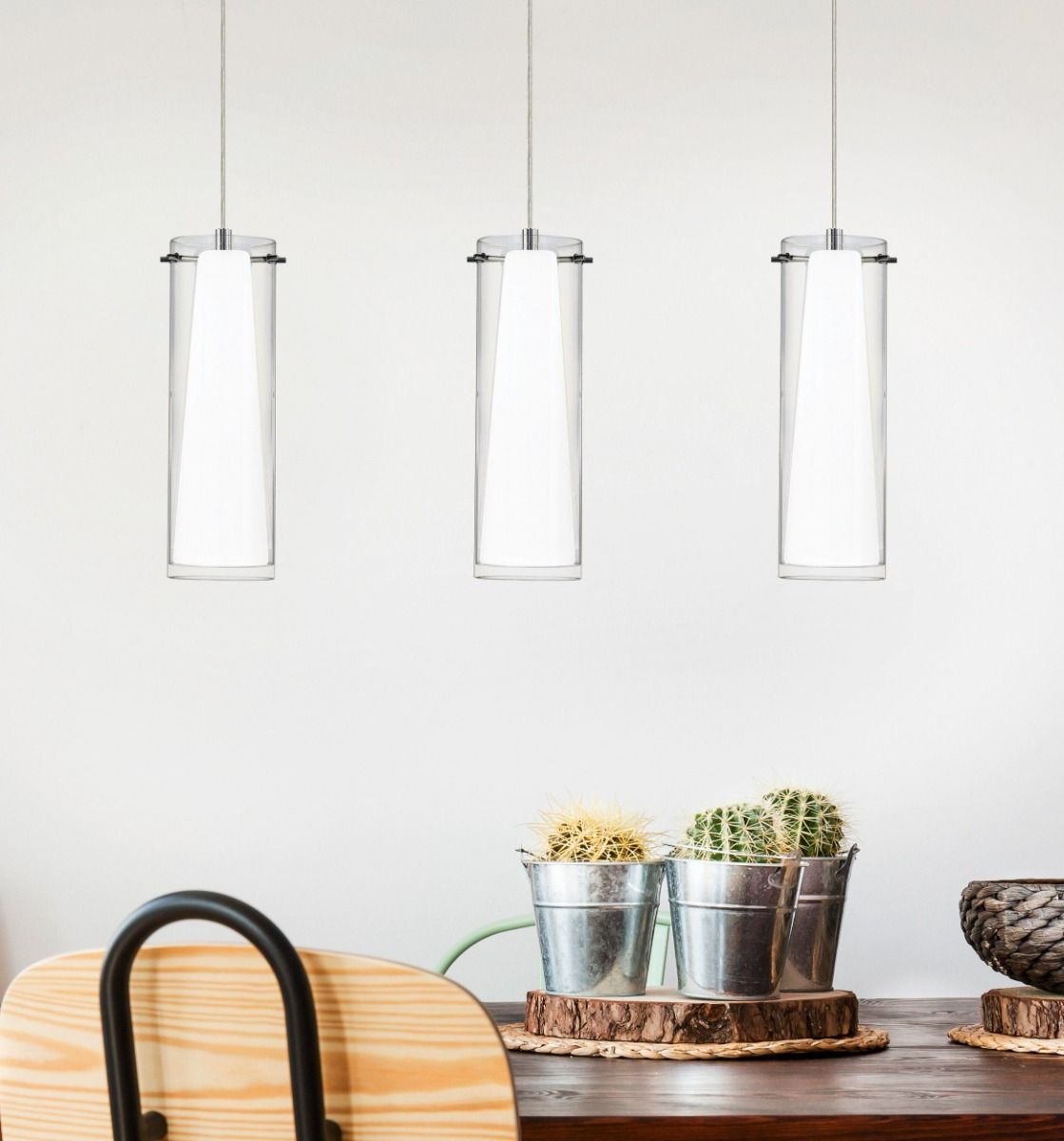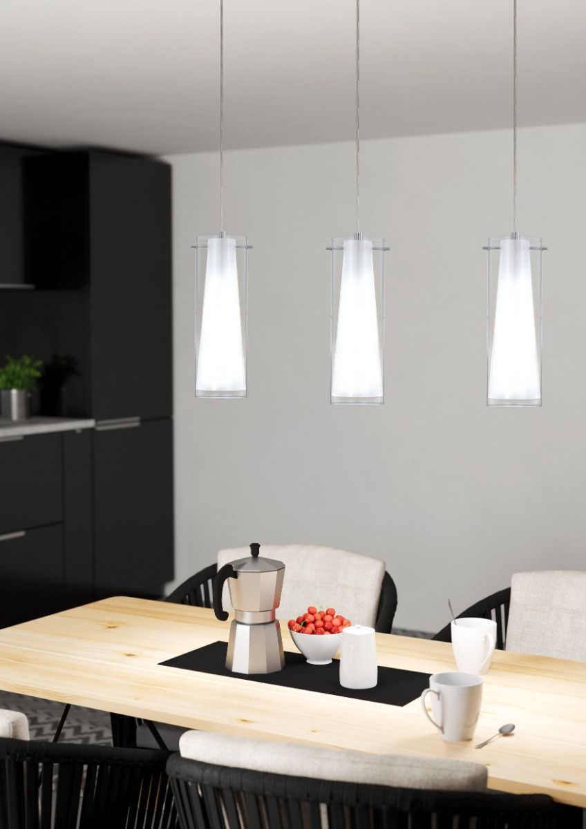 Κρεμαστό Φωτιστικό Τρίφωτη Ράγα 72,52xH110cm 3xE27 Χρωμέ -Γυαλί Διάφανο-Οπάλ Eglo Pinto 89833