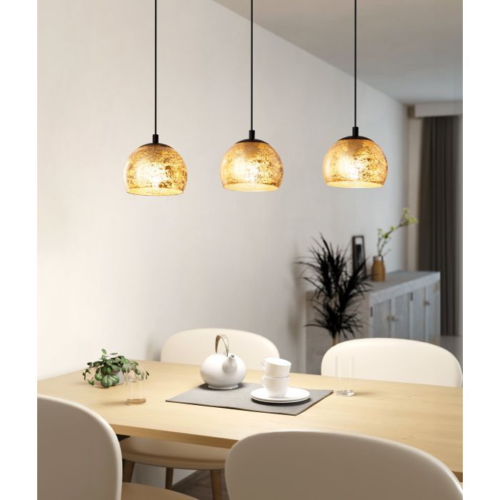 Κρεμαστό Φωτιστικό Τρίφωτη Ράγα 795xH1100cm 3xE27 Μαύρο-Γυαλί Χρυσαφί Eglo Albaraccin 98525
