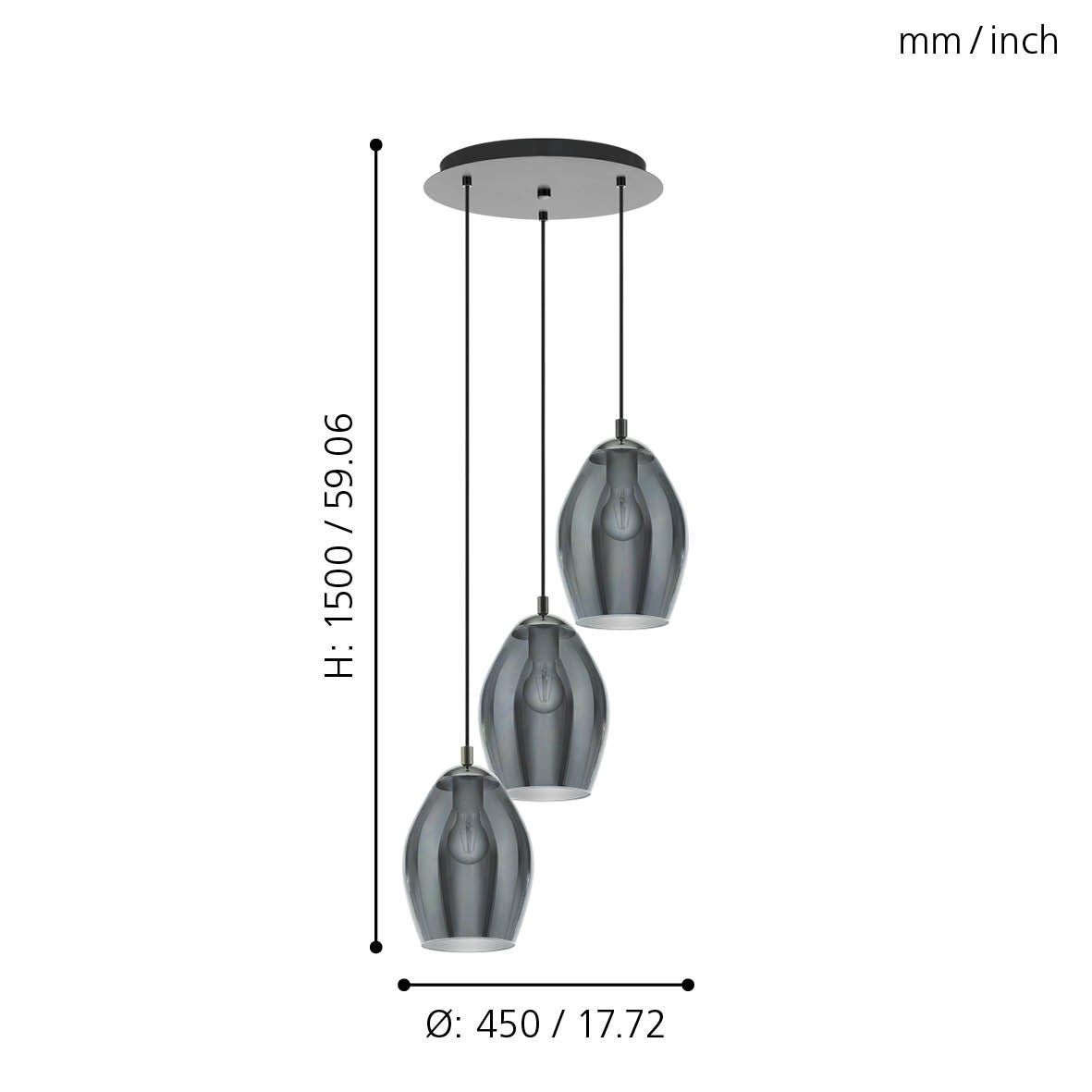 Κρεμαστό Φωτιστικό Τρίφωτο D45xH200cm 3xE27 Μέταλλο-Γυαλί Eglo Estanys 39565