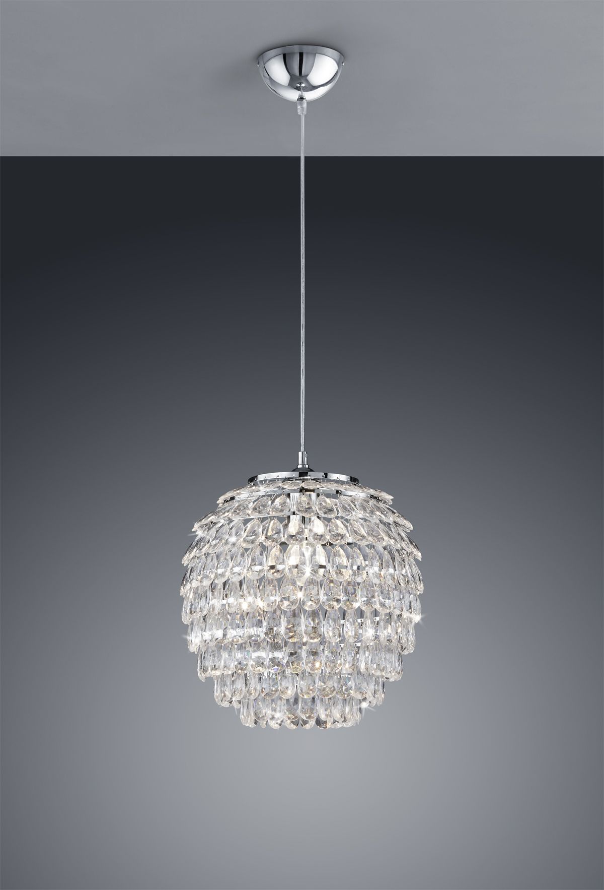 Μονόφωτο κρεμαστό φωτιστικό με κρύσταλλα από την εταιρεία Trio Lighting σε ασημί χρώμα, με υποδοχή για έναν λαμπτήρα και ντουί E27. Είναι κατασκευασμένο από γυαλί, ένα υλικό ιδιαίτερα ελκυστικό για τη διακόσμηση και τον φωτισμό του χώρου σας. Το γυαλί επιτρέπει τη διάχυση του φωτός με ομοιόμορφο τρόπο, δημιουργώντας μια ισορροπημένη φωτεινότητα στον χώρο. Τα κρεμαστά φωτιστικά οροφής από γυαλί είναι εύκολο να καθαριστούν και να συντηρηθούν, απλά χρησιμοποιώντας ένα πανί για να διατηρήσετε τη λάμψη τους.