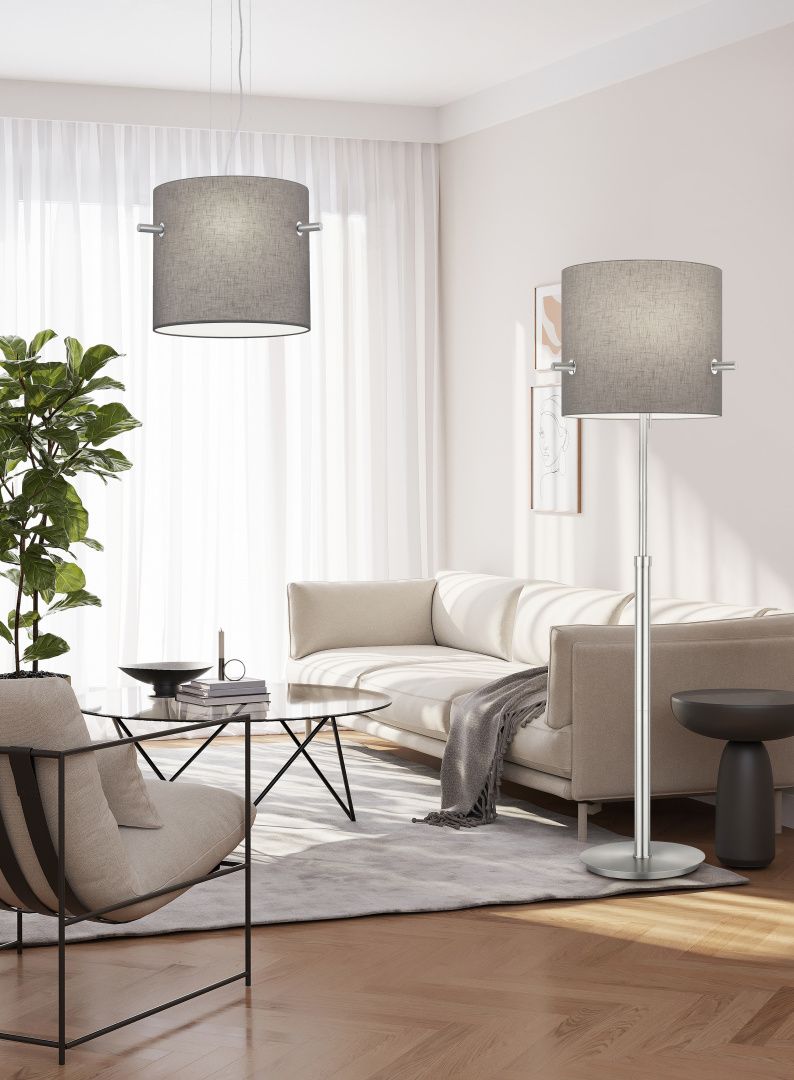 Thanks to the tasteful colour combination of matt nickel and grey, the light creates a timeless and modern environment.
