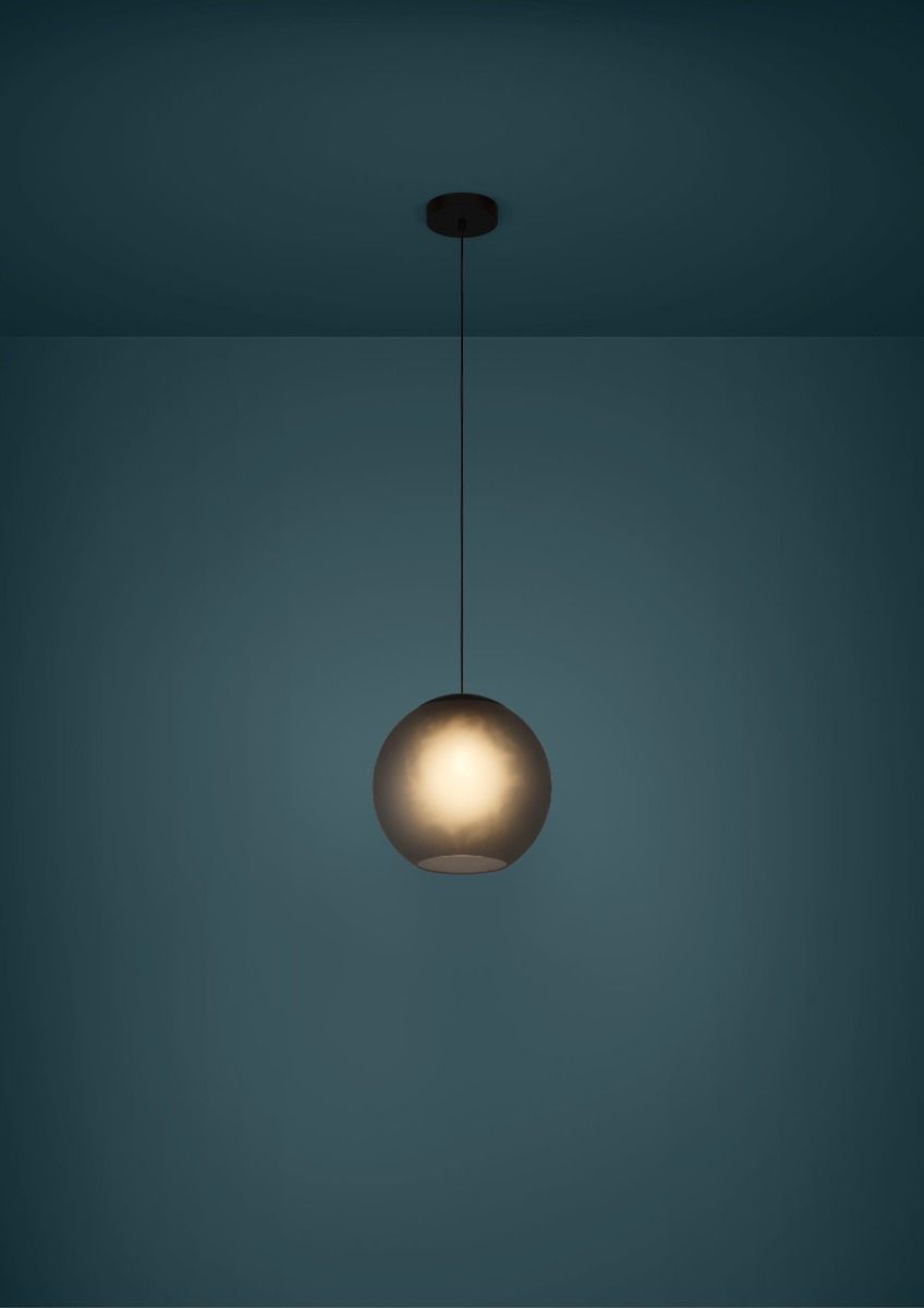 Κρεμαστό Φωτιστικό D30xH150cm Μονόφωτο Μπάλα 1xE27 Μαύρο Μέταλλο-Γκρι Γυαλί Eglo Arangona 390212