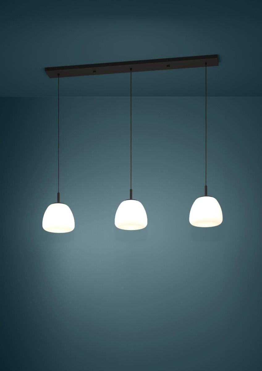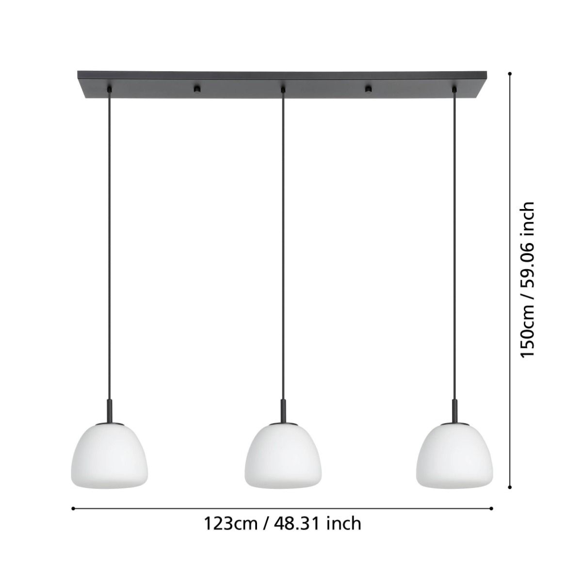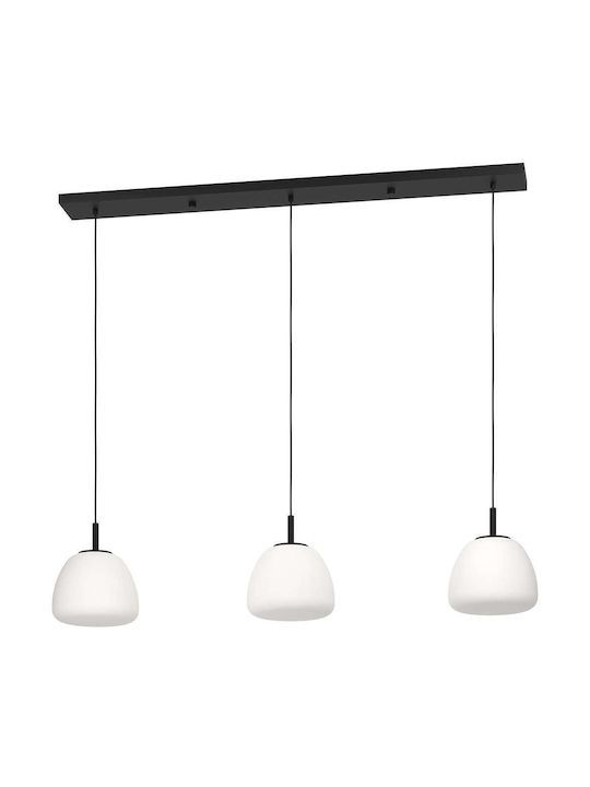 Κρεμαστό Φωτιστικό L123xH150cm Τρίφωτη Ράγα 3xE27 Μέταλλο Μαύρο-Λευκό Οπάλ Γυαλί Eglo Balmes 390202