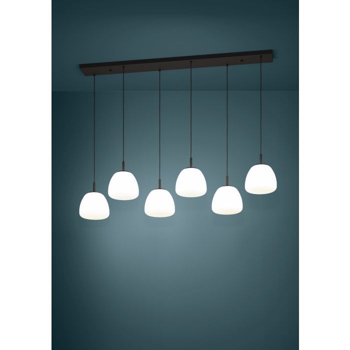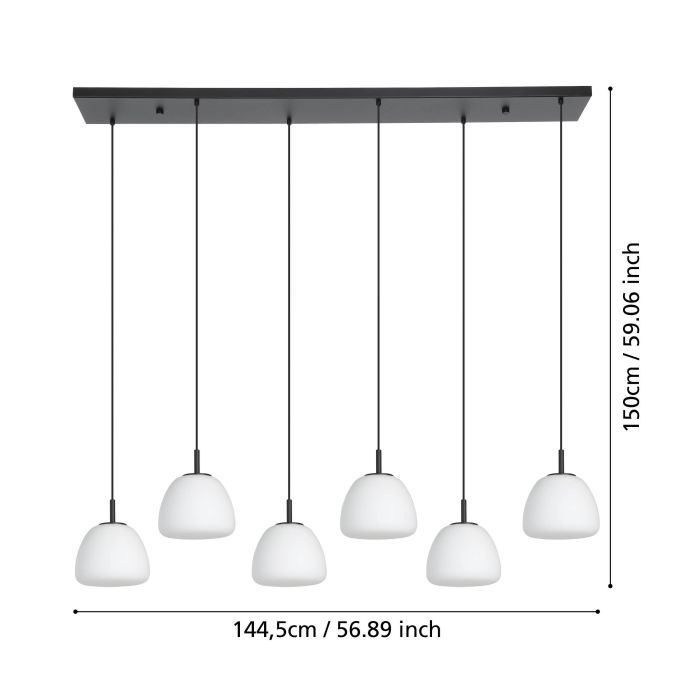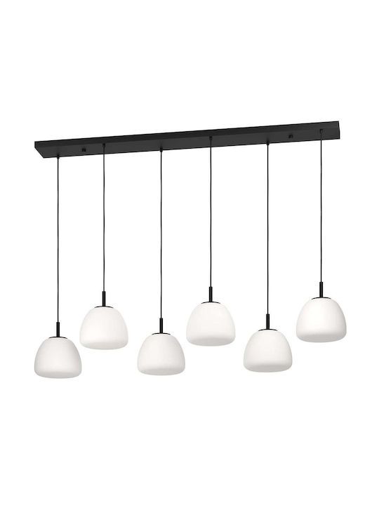 Κρεμαστό Φωτιστικό L144,5xH150cm Εξάφωτη Ράγα 6xE27 Μέταλλο Μαύρο-Λευκό Οπάλ Γυαλί Eglo Balmes 390203