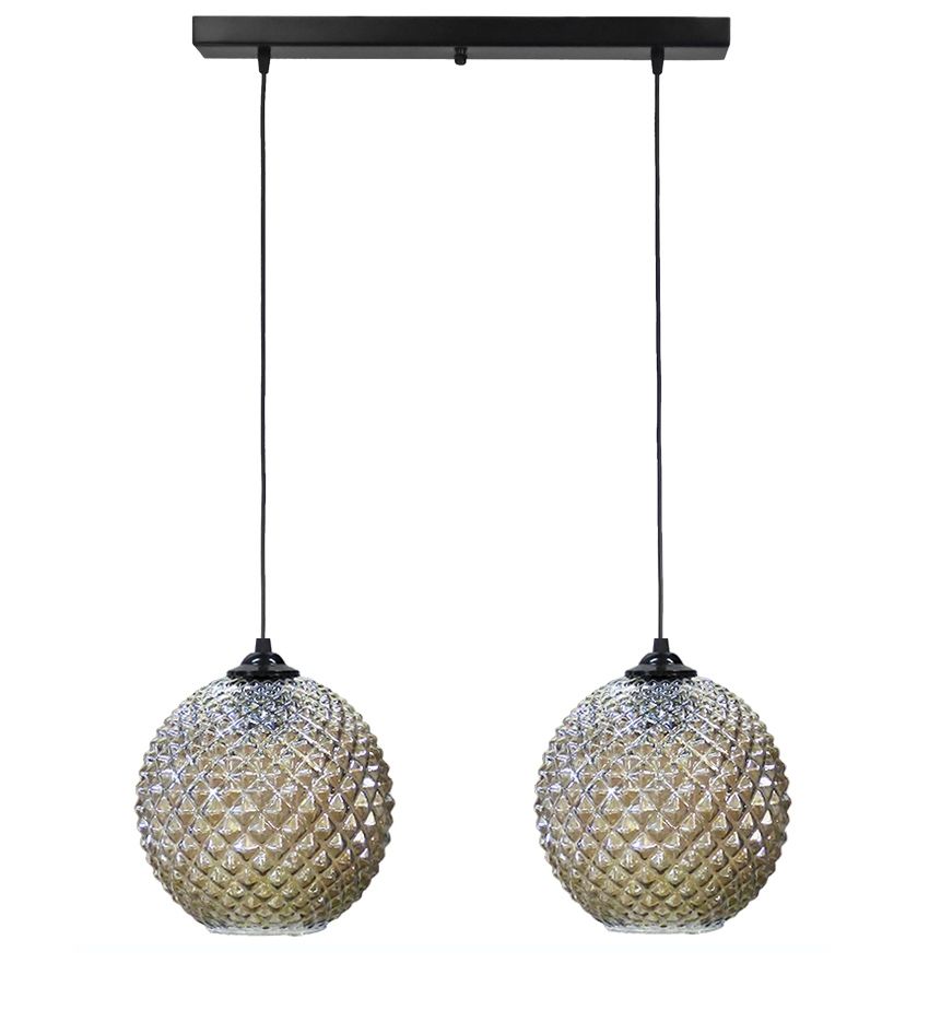 Κρεμαστό φωτιστικό 2φωτο μεταλλικό μαύρο, ράγα ,γυάλινες μπάλες φιμέ 5010/2 RAGA BL-FUME