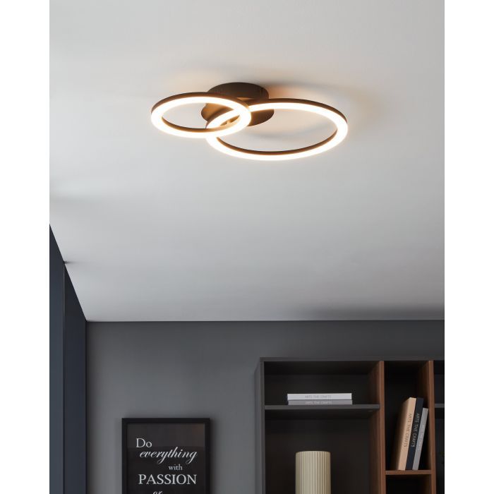 Μοντέρνα πλαφονιέρα οροφής της Eglo σε μαύρο χρώμα, από μέταλλο.