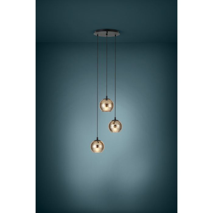 Μοντέρνο Κρεμαστό Φωτιστικό Τρίφωτο Ροζέτα 44cm 3xE27 Μαύρο-Χρυσαφί Eglo Lemorieta 39685
