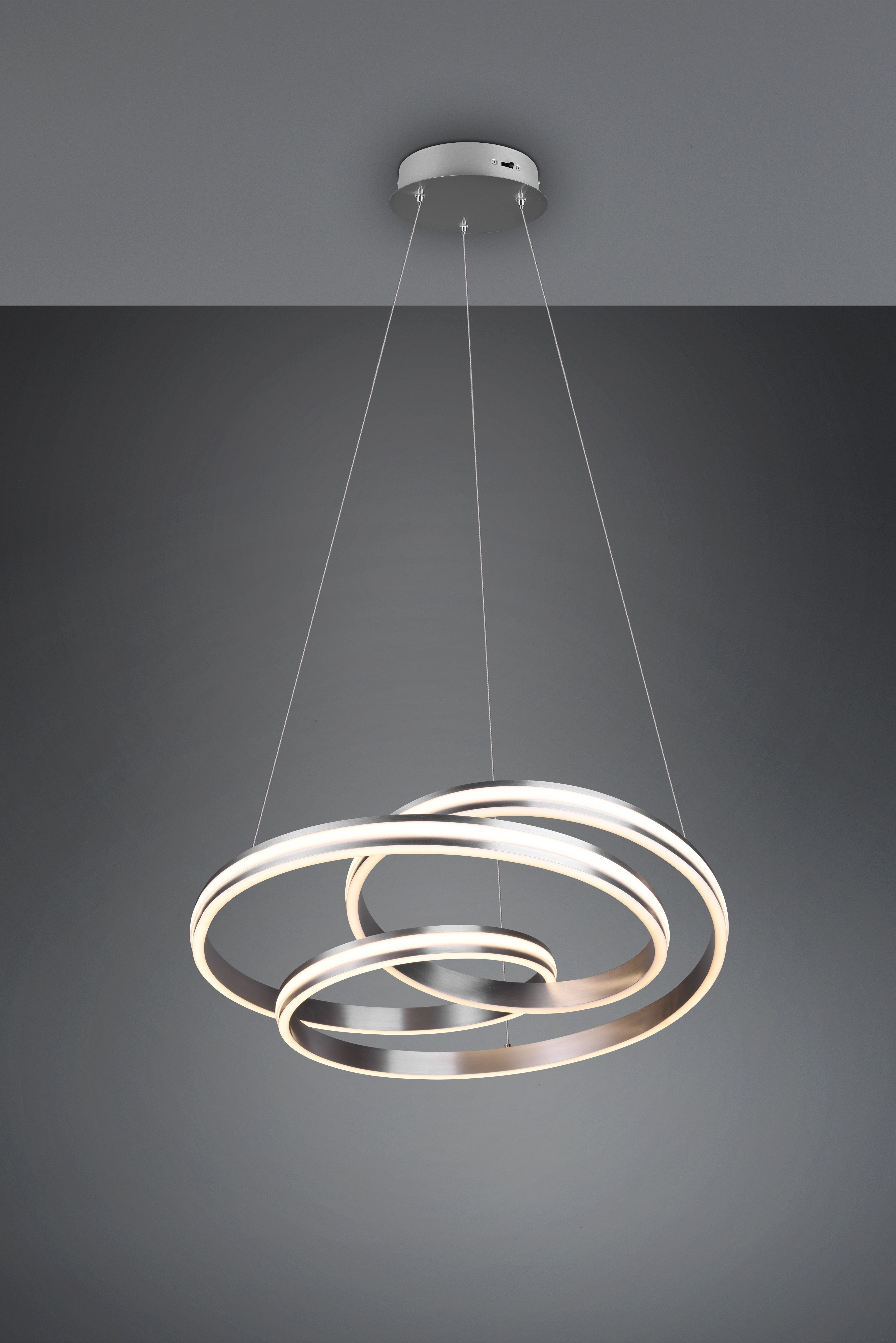 Kρεμαστό φωτιστικό με ενσωματωμένο LED από την εταιρεία Trio Lighting σε ασημί χρώμα. Είναι κατασκευασμένο από μέταλλο, ένα υλικό δημοφιλή στα κρεμαστά φωτιστικά οροφής, καθώς πέρα από τη μοντέρνα νότα που προσφέρει, είναι ιδιαίτερα ανθεκτικό στον χρόνο. Καθαρίζεται εύκολα με ένα πανί. Τέλος, η απόχρωση του LED ρυθμίζεται ανάμεσα σε θερμό λευκό, φυσικό λευκό και ψυχρό λευκό φως. Έτσι, μπορείτε να εναλλάσσετε τις διαβαθμίσεις όποτε επιθυμείτε.