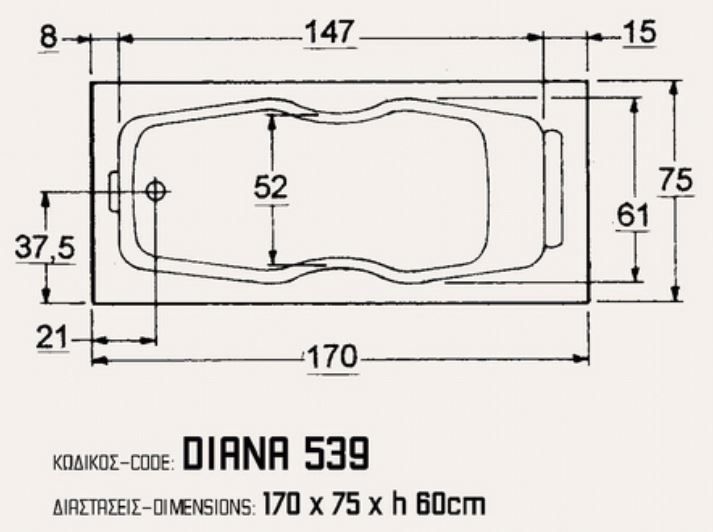 Μπανιέρα Ακρυλίκή 170*75*60 εκ. Ευθύγραμμη Sanitec Diana 539.