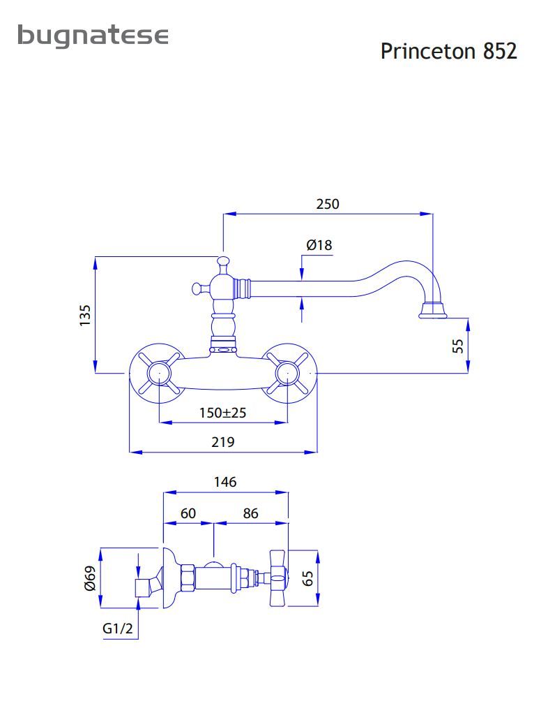Μπαταρία Νεροχύτη Κουζίνας Τοίχου Princeton Bugnatese Black Matt 852-400