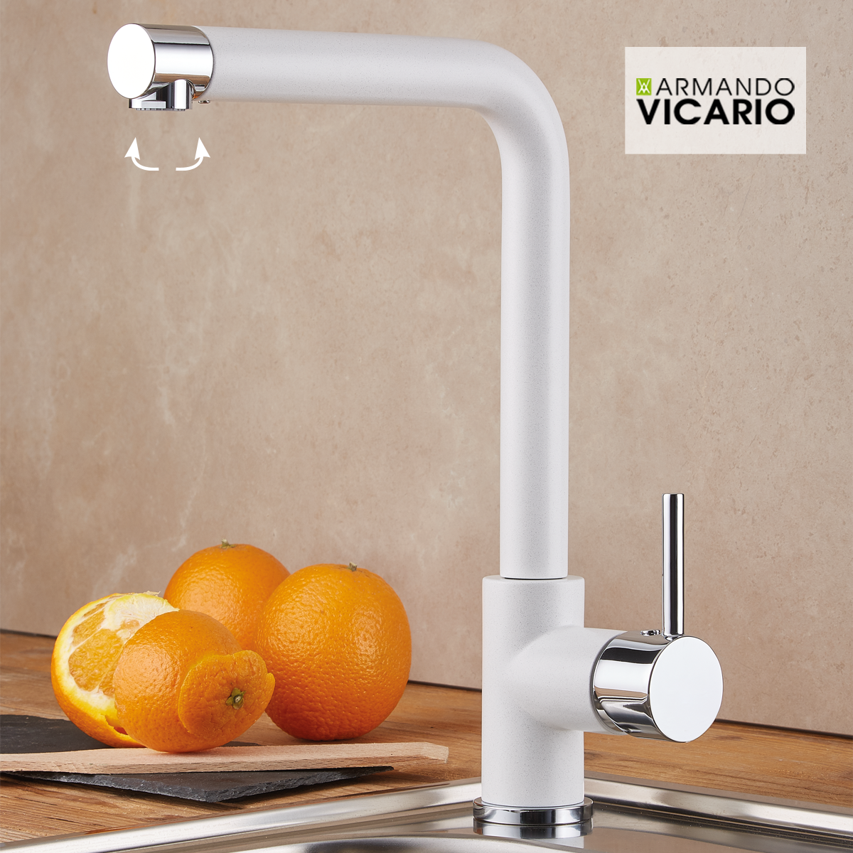 Μπαταρία Κουζίνας με Περιστρεφόμενο Ρουξούνι Cristalite Granite Croma Armando Vicario Fluo 18510-1441