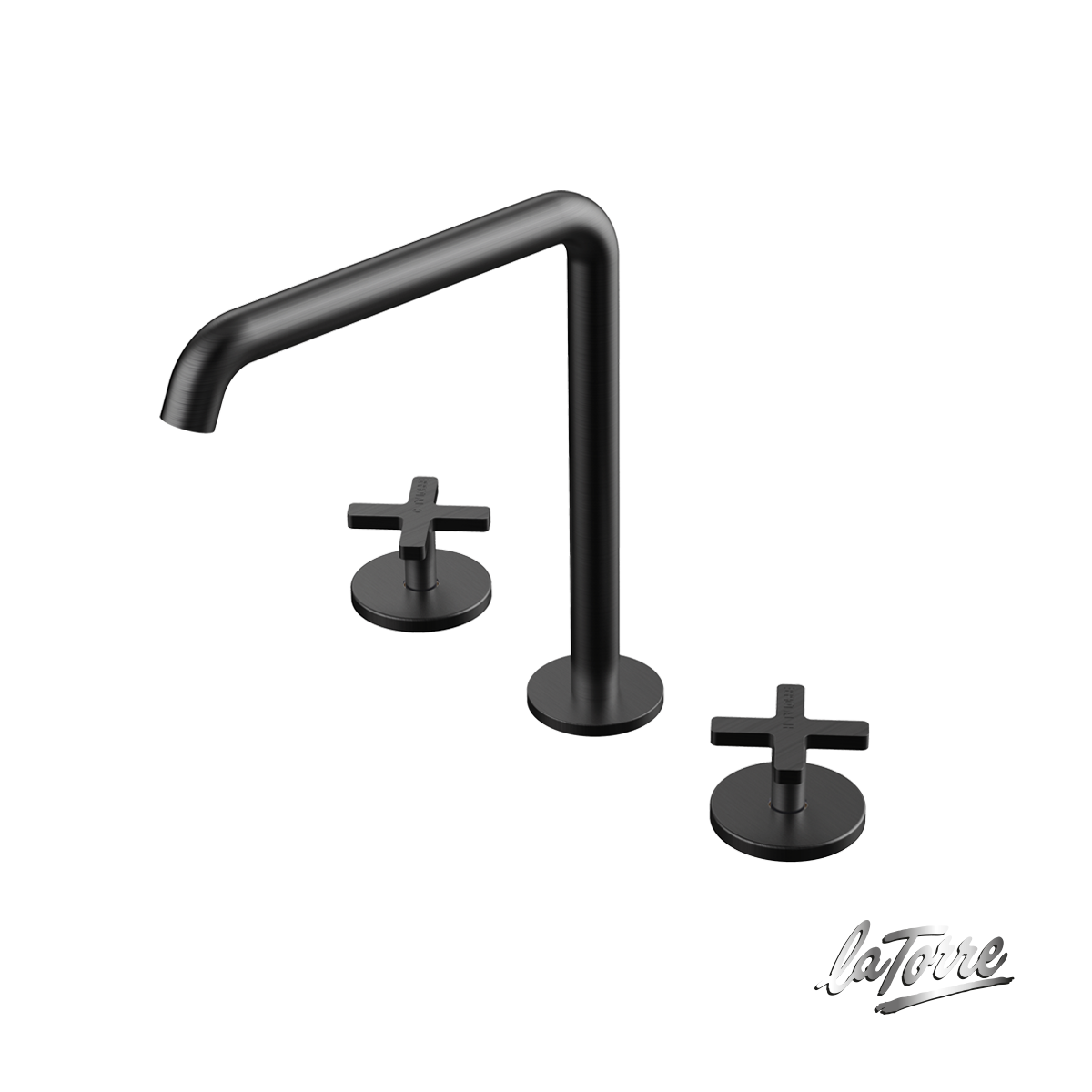 Μπαταρία Νιπτήρα Επικαθήμενη 3 οπών με Βαλβίδα Clic-Clac Εlle Cross La Torre Black Brushed 38102-410