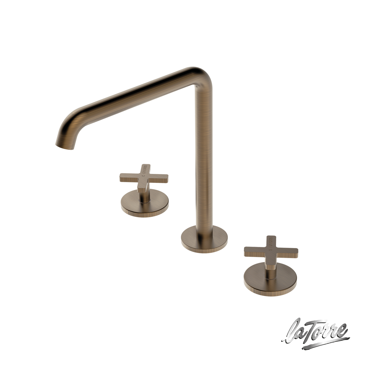 Μπαταρία Νιπτήρα Επικαθήμενη 3 οπών με Βαλβίδα Clic-Clac Εlle Cross La Torre Antique Brass 38102-221