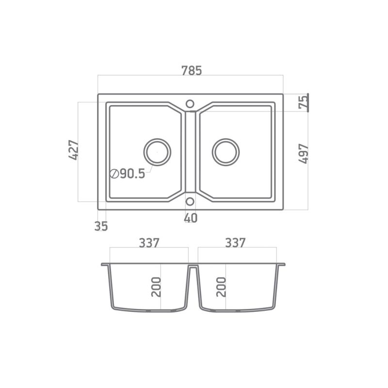 Ιδιαίτερα δημοφιλής σχεδιασμός με 2 όμοιες γούρνες. Εξωτερικές διαστάσεις 78,5cm Χ 49,7cm & μέγιστο βάθος γούρνας 20cm
