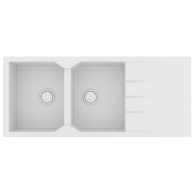Νεροχύτης Κουζίνας Δύο Γούρνες & Ποδιά 116x50cm Ένθετος Ερμάριο 80cm Sanitec Ultra Granite 800-30-Bianco