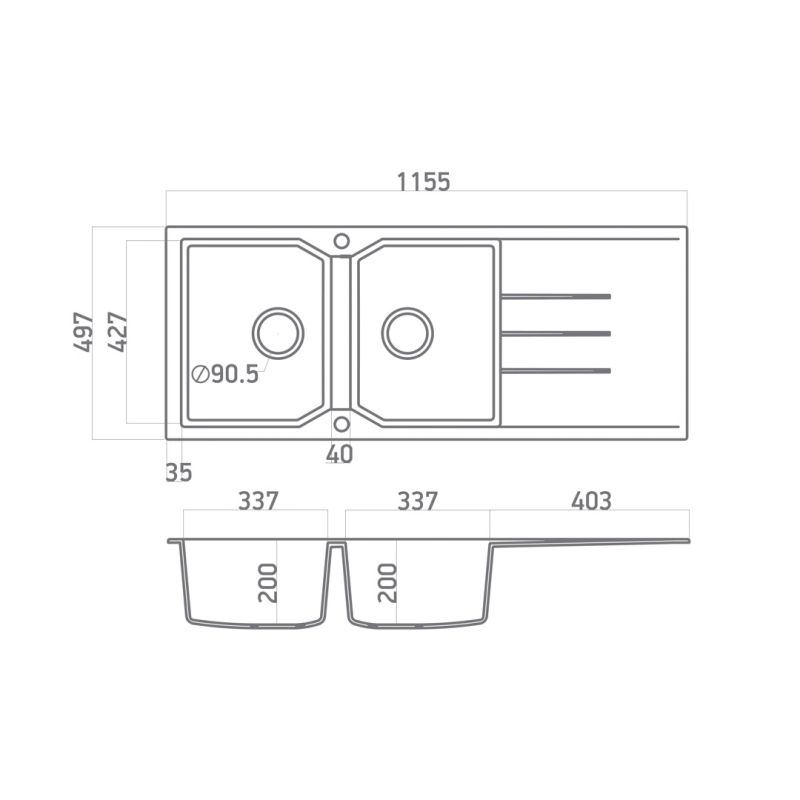 Εντοιχίζεται σε ερμάριο 80cm και συνοδεύεται από βαλβίδες αποχέτευσης με σύστημα υπερχείλισης & τα αντίστοιχα σιφόν.