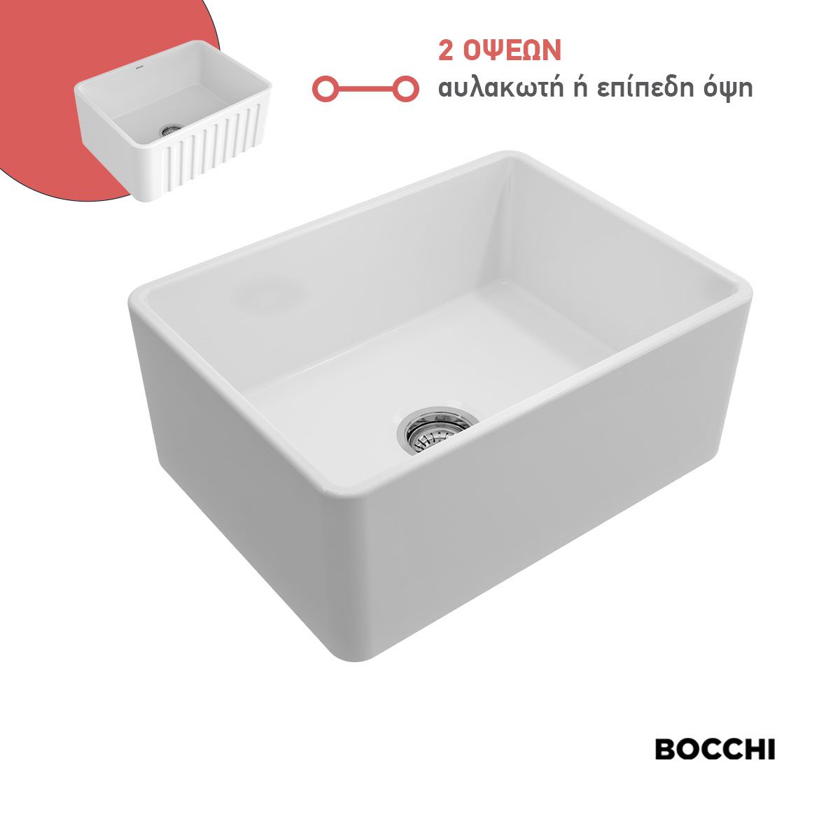 Νεροχύτης Κουζίνας Πορσελάνης Επικαθήμενος 61x46,5 Bocchi White Matt 1099-301