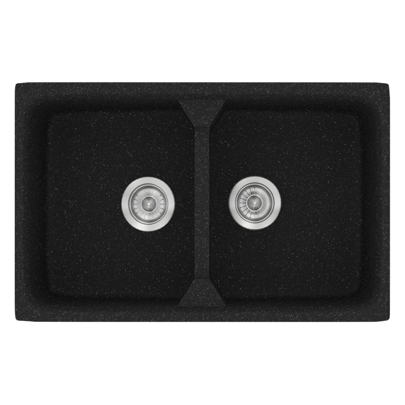 Νεροχύτης Κουζίνας Συνθετικός 78x51cm 2 Γούρνες Ένθετος Eρμάριο 80cm Sanitec Classic 318-05-Granite-Black