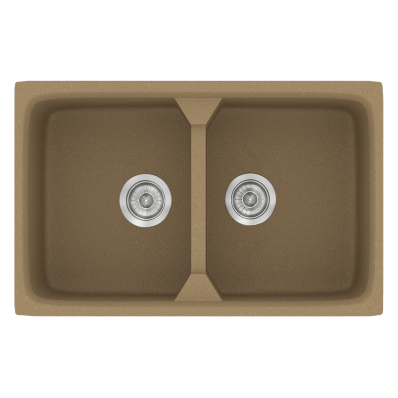 Νεροχύτης Κουζίνας Συνθετικός 78x51cm 2 Γούρνες Ένθετος Eρμάριο 80cm Sanitec Classic 318-16-Metallic-Coffee