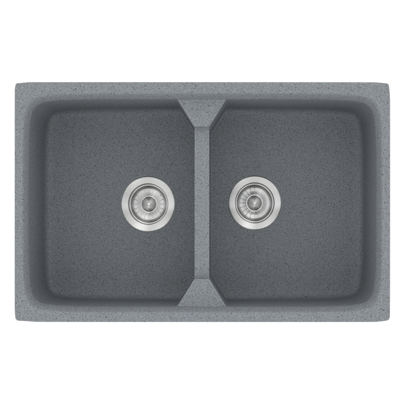 Νεροχύτης Κουζίνας Συνθετικός 78x51cm 2 Γούρνες Ένθετος Eρμάριο 80cm Sanitec Classic 318-17-Metallic-Silver
