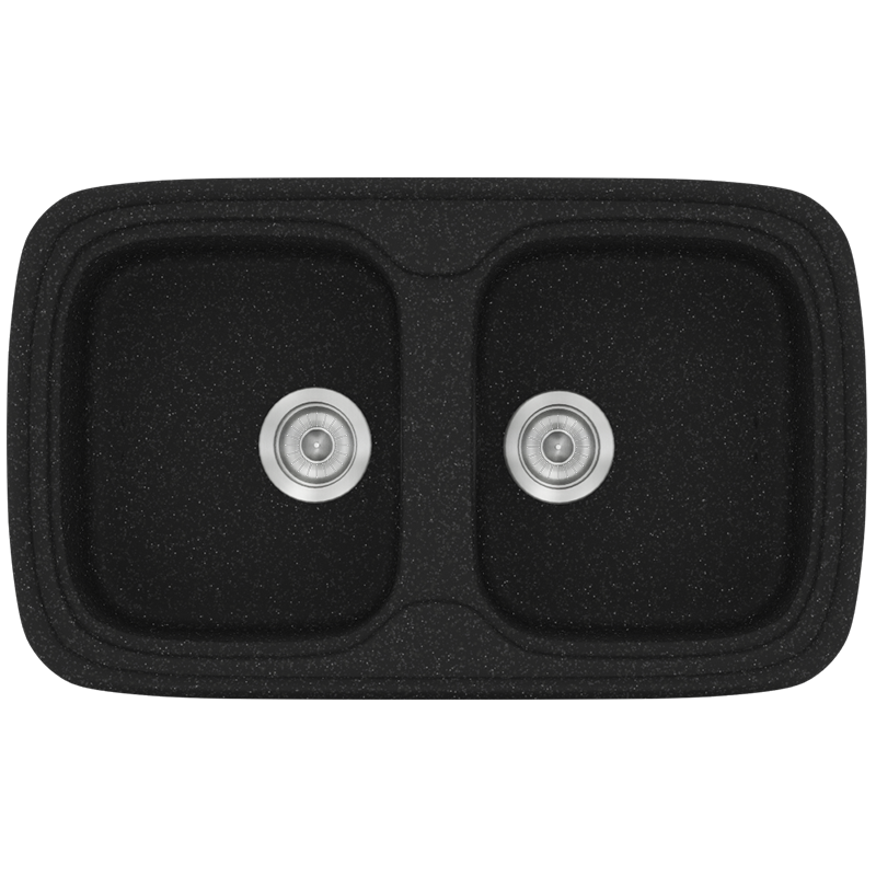 Νεροχύτης Κουζίνας Συνθετικός 82x50 εκ.2 Γούρνες Granite Black Ένθετος Eρμάριο 80 εκ.Sanitec Premium 312-05