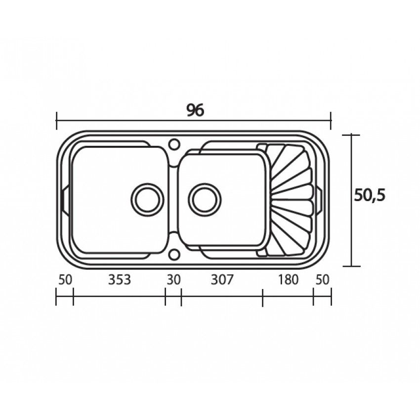 Νεροχύτης Κουζίνας Συνθετικός 96*51 εκ. Ένθετος σε ερμάριο 80 εκ. Δύο γούρνες & Ποδιά Sanitec Classic 304