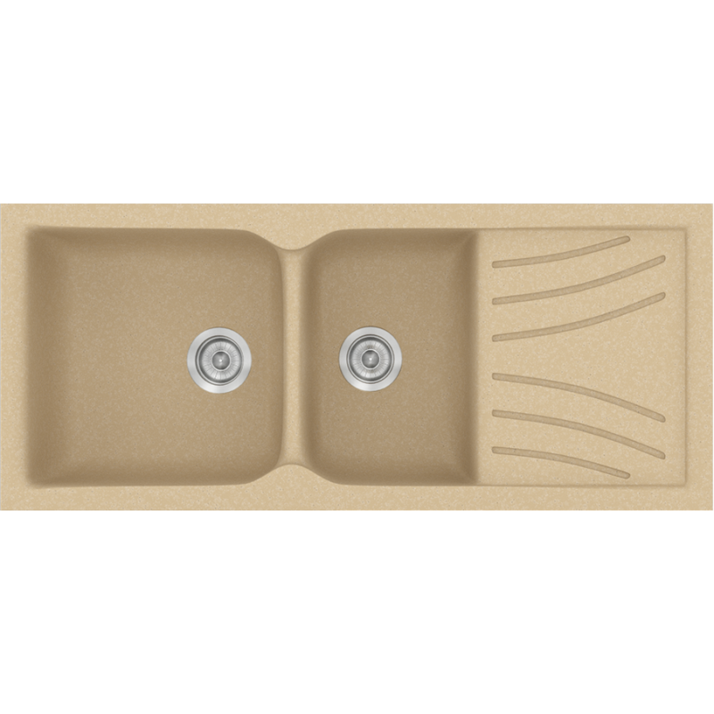 Νεροχύτης Κουζίνας Συνθετικός Granite Cappuccino 115*50 εκ. Ένθετος Eρμάριο 80 εκ. Δύο γούρνες & Ποδιά Sanitec Electric 323