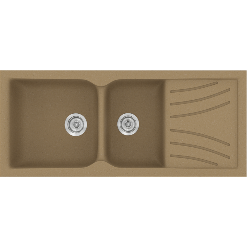 Νεροχύτης Κουζίνας Συνθετικός Metallic Coffee 115*50 εκ. Ένθετος-Υποκαθήμενος Eρμάριο 80 εκ. Δύο γούρνες & Ποδιά Sanitec Electric 323