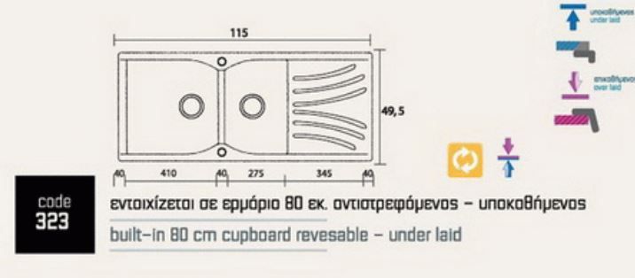 Κατόπιν ζήτησης διατίθεται Κιτ Στήριξης για μετατροπή του νεροχύτη σε Υποκαθήμενο.