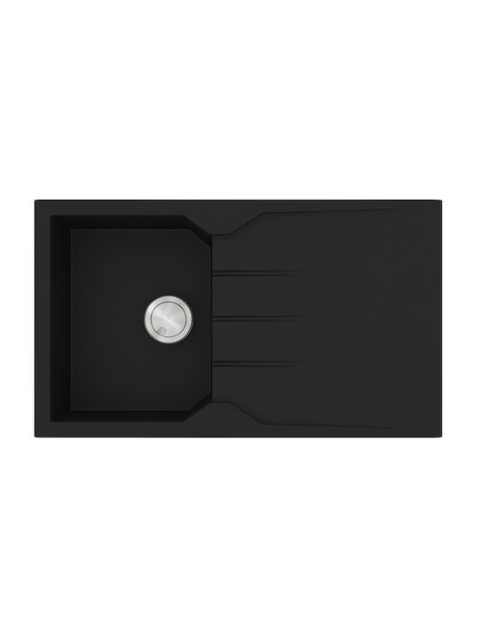 Νεροχύτης Κουζίνας με Ποδιά 86x50cm Ένθετος Ερμάριο 40cm Sanitec Ultra Granite 805-33-Nero