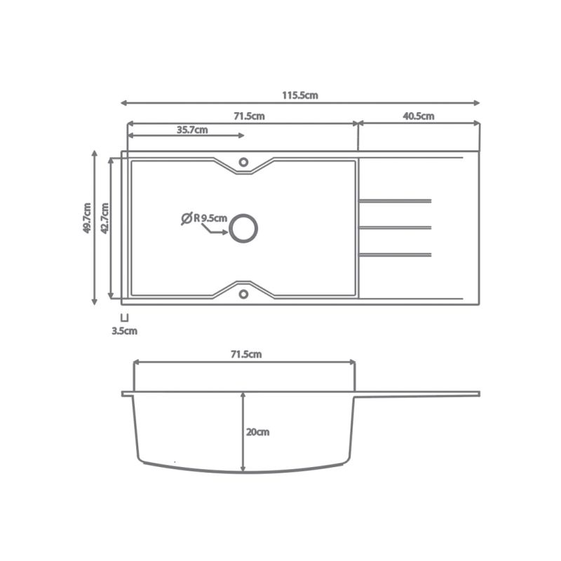 Νεροχύτης κουζίνας από φυσικό ορυκτό γρανίτη & συνθετικές ρητίνες.