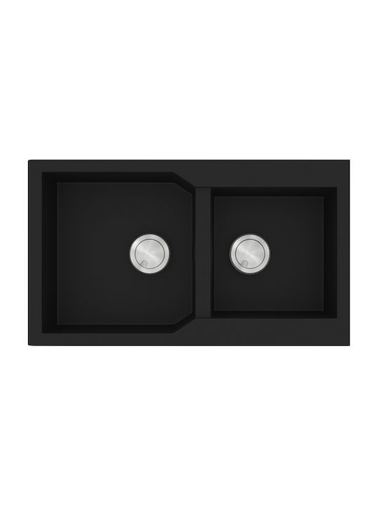 Νεροχύτης Κουζίνας 2 Γούρνες 86x50cm Ένθετος Ερμάριο 90cm Sanitec Ultra Granite 804-33-Nero