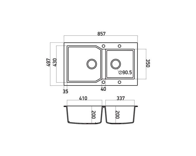 Εντοιχίζεται σε ερμάριο 90cm και συνοδεύεται από βαλβίδα αποχέτευσης με σύστημα υπερχείλισης & το αντίστοιχο σιφόν.