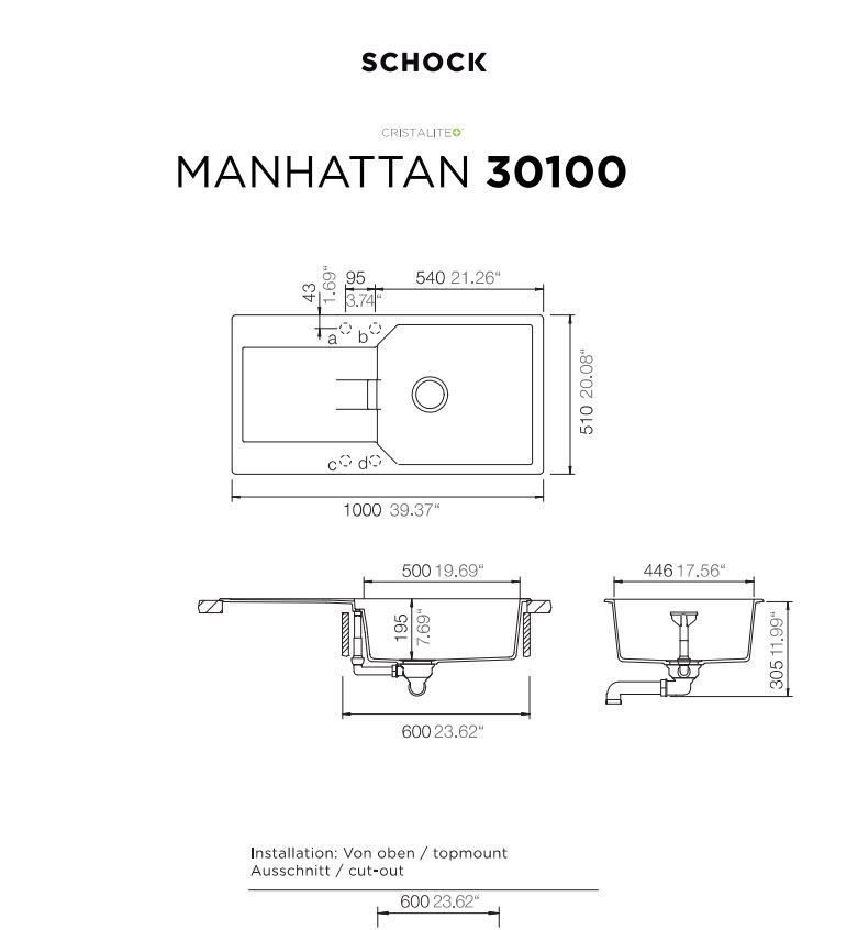 Νεροχύτης Κουζίνας Γρανίτη Manhattan 100x51 Schock Cristalite Concrete Granite 30100-1451