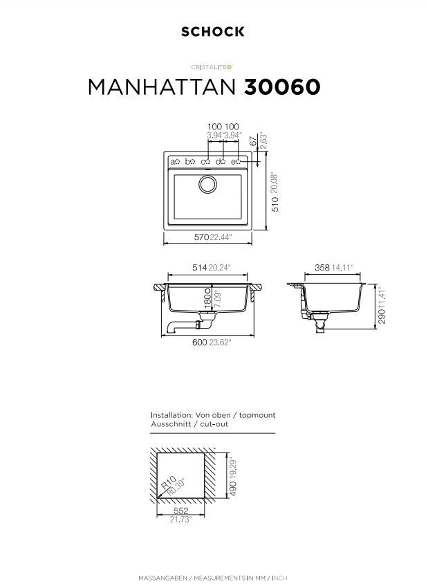 Νεροχύτης Κουζίνας Γρανίτη Manhattan 57x51 Schock Cristalite Concrete Granite 30060-1451