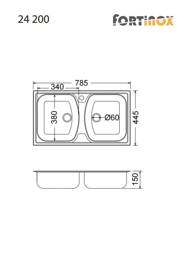 Νεροχύτης 78,5*44,5 εκ. Λείος Ένθετος για ερμάριο 80 εκ.Fortinox Slender 24200