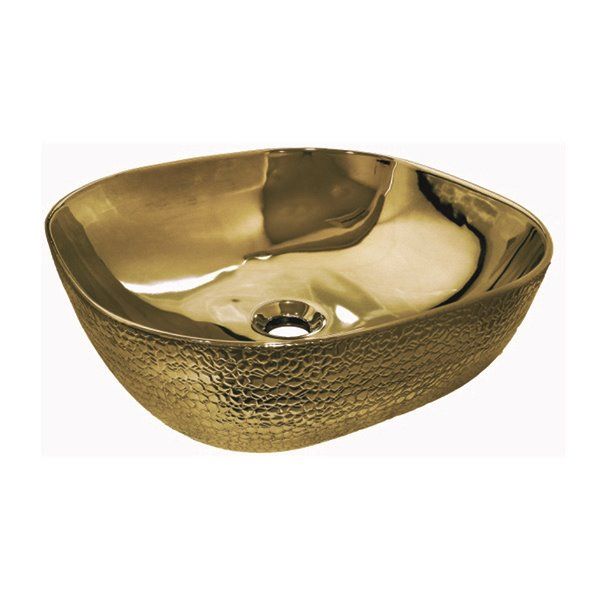 Ετιτραπέζιος Κεραμικός Νιπτήρας 42,5*42,5*14,5εκ. Χρυσό εσωτερικά Χρυσό Κροκοδειλέ εξωτερικά Domistyle R1301B