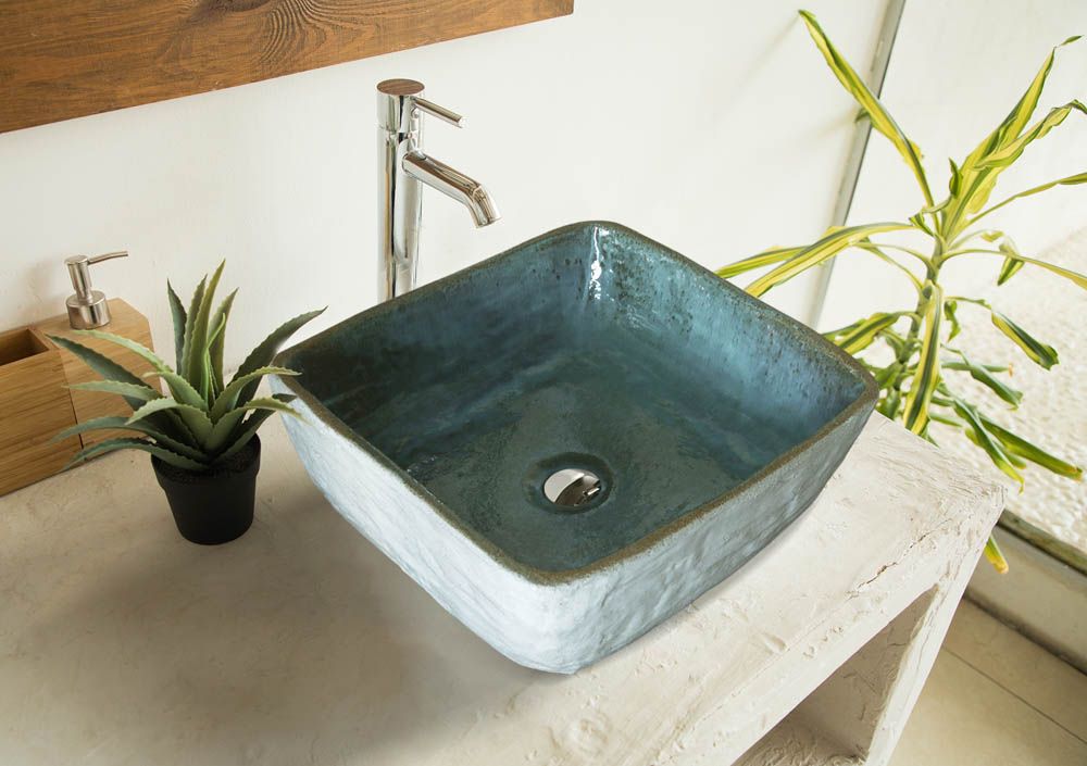 Νιπτήρας Κεραμικός Χειροποίητος 40x40 εκ. Μπεζ-Τυρκουάζ αποχρώσεις Art Collection 4040WT
