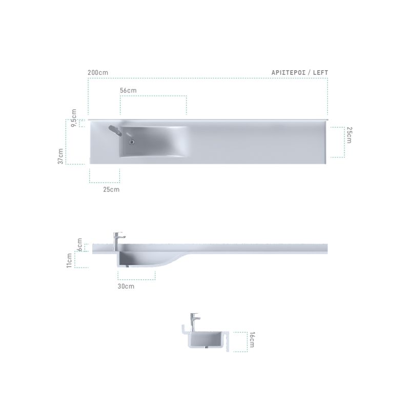 Διατίθεται με Νιπτήρα Αριστερά ή Δεξιά.