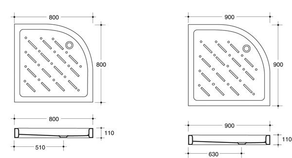 Ντουσιέρα Λευκή Πορσελάνη Ημικυκλική Μ80xΠ80xΥ12cm Colorado C08080