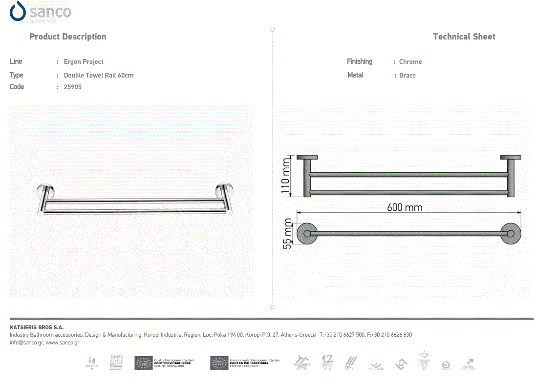 Περιγραφή: Πετσετοθήκη Διπλή 60εκ.