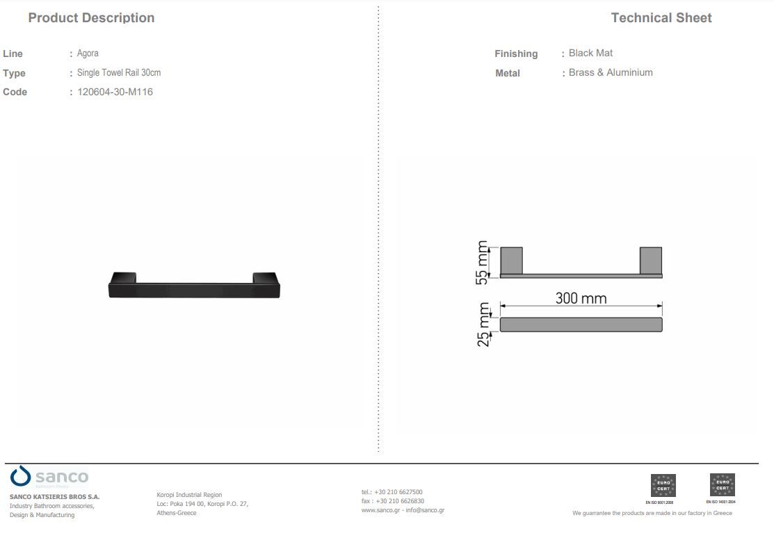 Πετσετοθήκη 30 εκ.Επιτοίχια Black Mat Sanco Agora 120604-30-M116Ειδική Τιμή 36,00 € Κανονική τιμή 40,00 € -