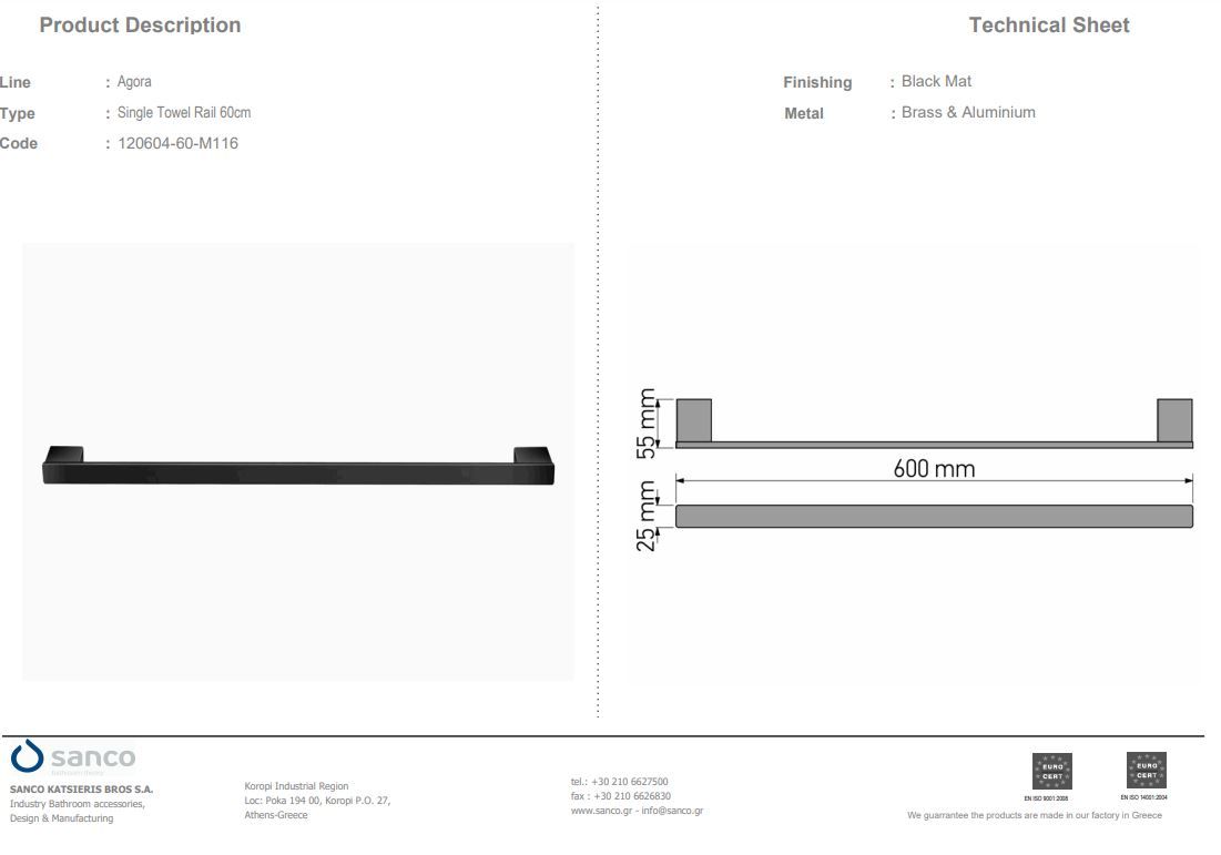 Πετσετοθήκη 60 εκ.Επιτοίχια Black Mat Sanco Agora 120604-60-M116Ειδική Τιμή 45,00 € Κανονική τιμή 50,00 € -