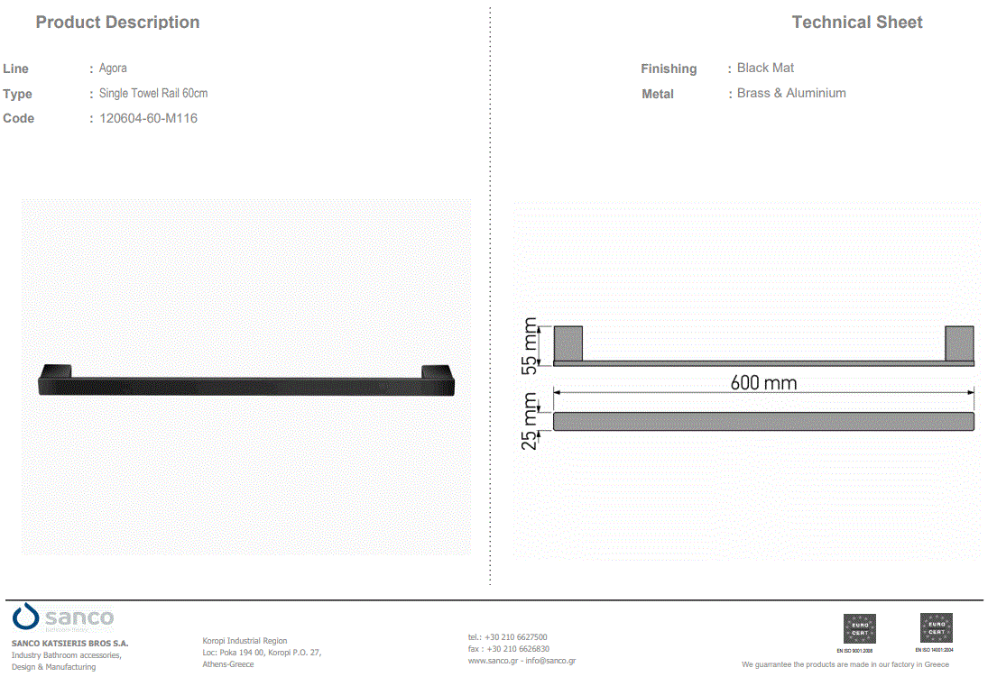 Πετσετοθήκη 60 εκ.Επιτοίχια Black Mat Sanco Agora 120604-60-M116
