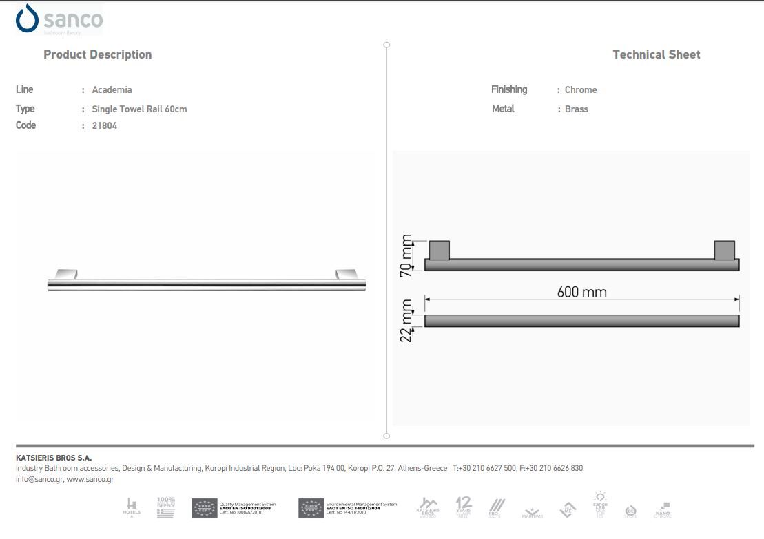 Πετσετοκρεμάστρα 60cm Sanco Academia Chrome 21804-A03